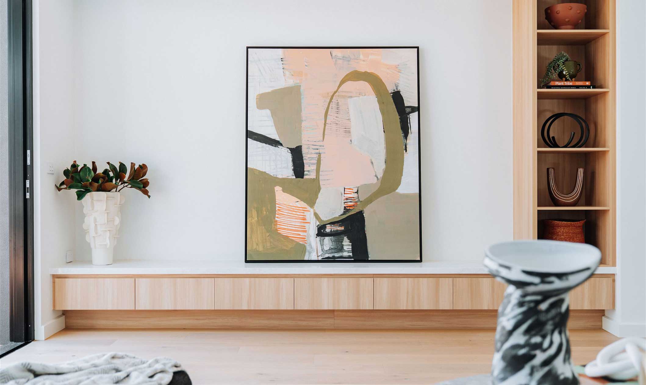 Sculpted feature walls and extensive custom cabinetry throughout the home add a sense of flow and cohesion, with a purpose-designed study seamlessly integrated to support modern living.