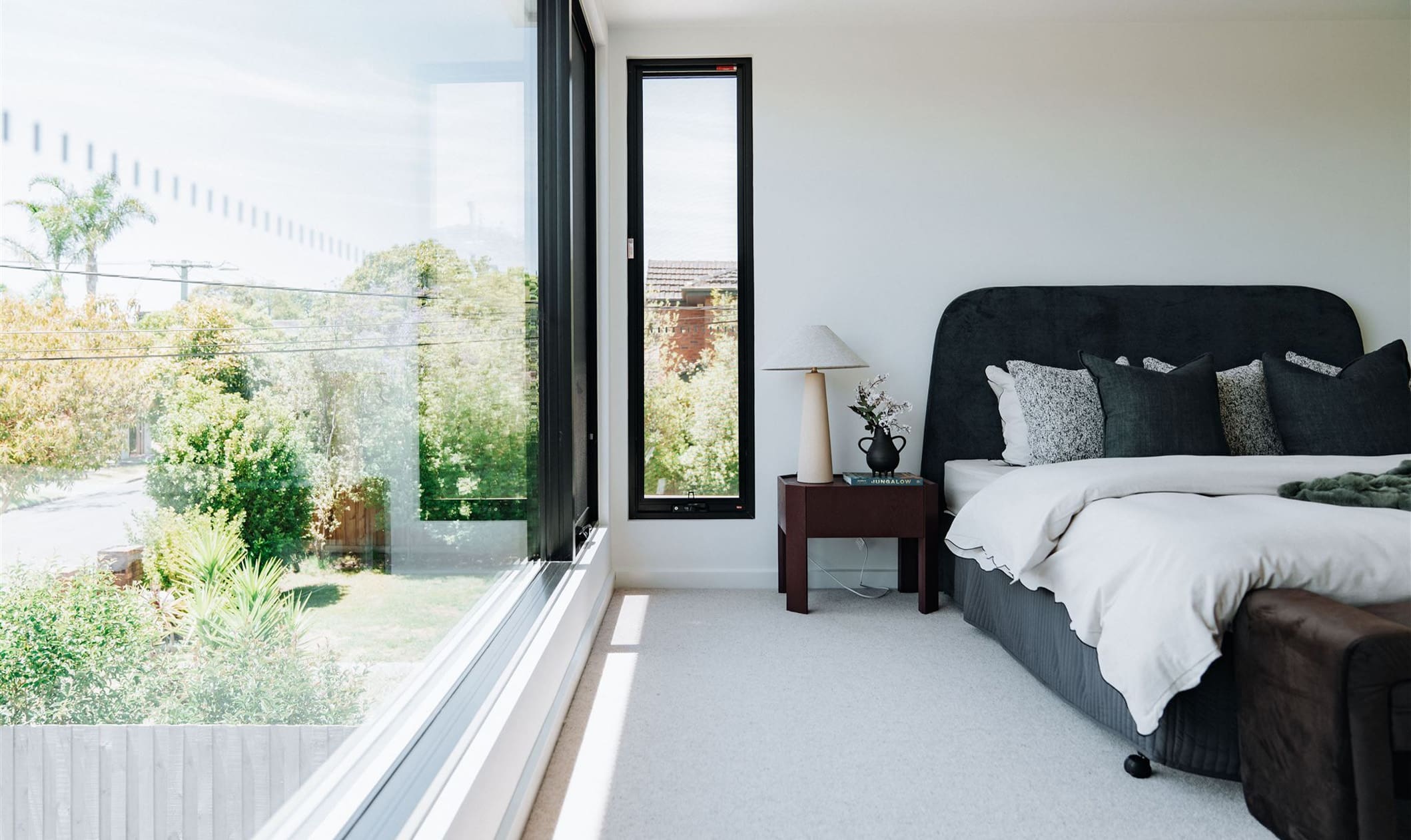 Generous ceiling heights enhance the sense of openness across both levels, while twin bi-parting stacker doors dissolve the boundary between indoors and out.